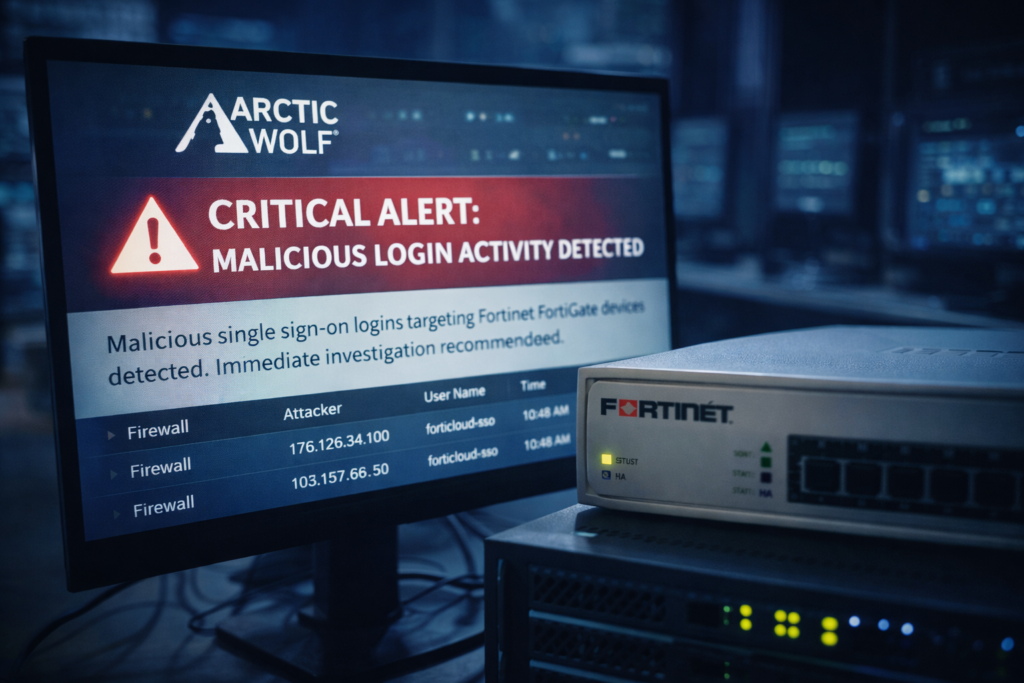 Security researchers are warning of active intrusion attempts targeting Fortinet FortiGate devices, following the discovery of malicious single sign-on (SSO) activity linked to recently disclosed vulnerabilities. The activity was first identified last Friday, according to a new report from Arctic Wolf.