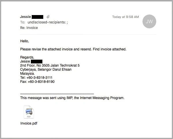 Victims appear to be employees working in finance, procurement, supply chain, and administrative roles across commercial and industrial sectors such as oil and gas, import, and export businesses. Attack messages are written in several languages, including Arabic, Spanish, Portuguese, Farsi, and English, suggesting a geographically focused but multi-regional campaign.